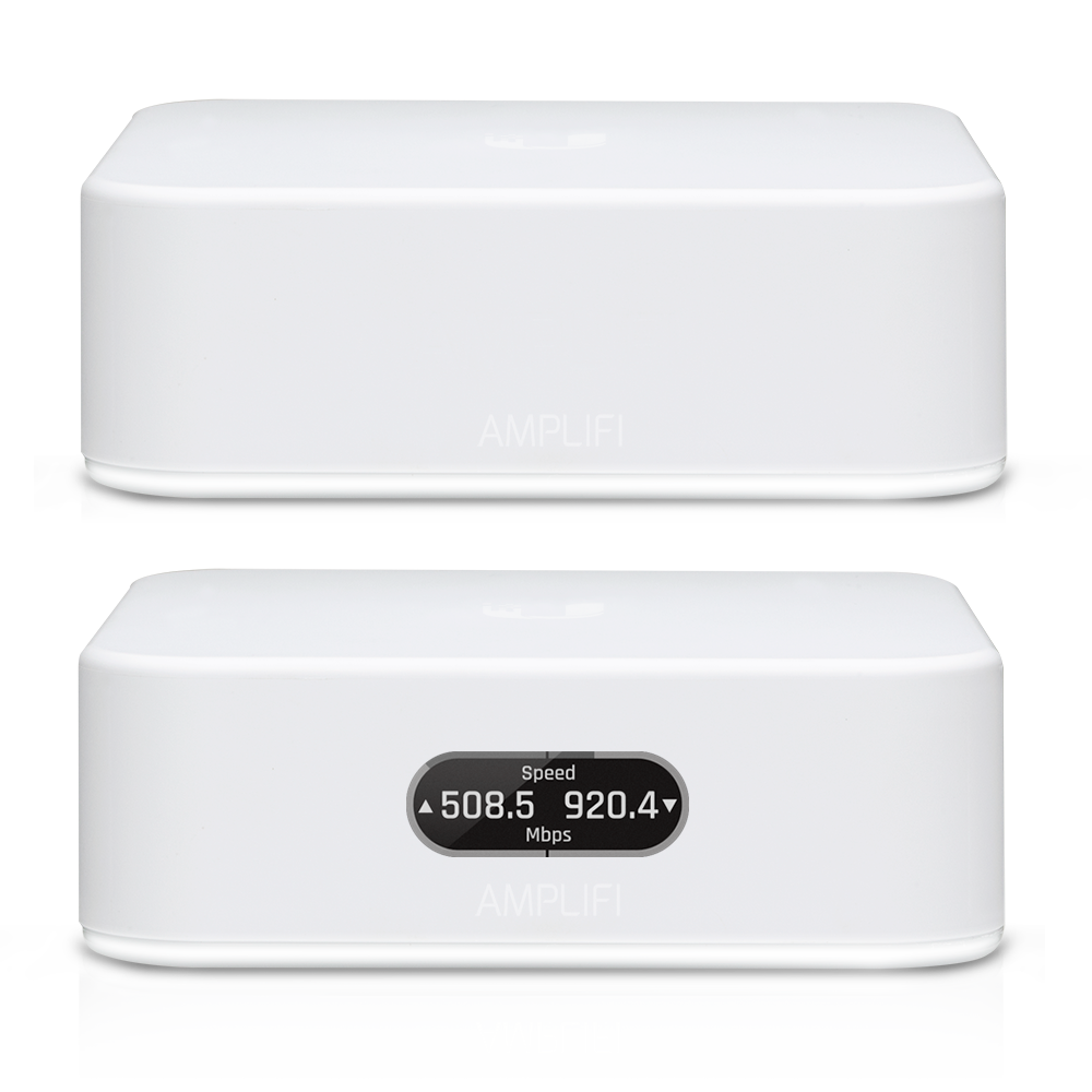 Ubiquiti Amplifi Instant Wi-Fi Sistemi, kullanımı kolay dokunmatik ekranlı bir yönlendirici, 1 Gigabit Ethernet bağlantı noktası, WAN bağlantı noktası, Ethernet kablosu ve evinizdeki kapsama alanını en üst düzeye çıkarmak ve ölü bölgeleri ortadan kaldırmak için bir Ethernet bağlantı noktasına sahip bir MeshPoint içerir .